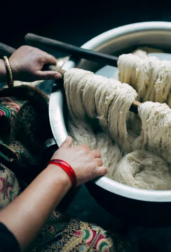 Having travelled to the mills, both in Nepal and India, we have set up strong relationships with our master weavers, which ensures excellent communication and standards.